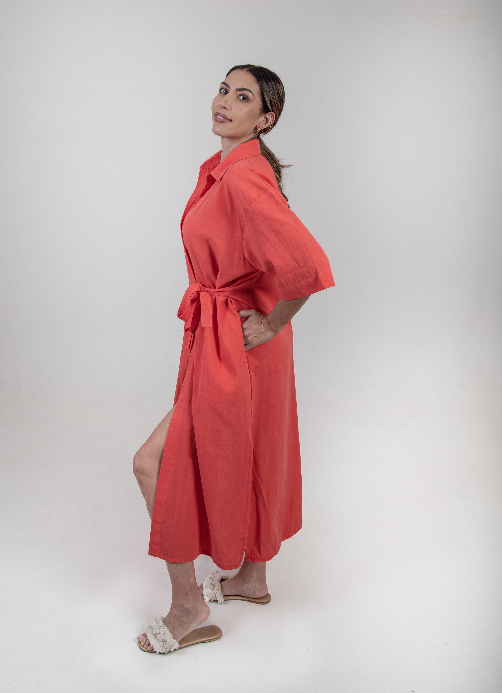 Este vestido está confeccionado en manta con acabado tipo mezclilla: una tela natural, suave y con estructura, ideal para quienes buscan estilo sin sacrificar comodidad. Su diseño cruzado con amarre ajustable realza la silueta y se adapta fácilmente a distintos tipos de cuerpo.